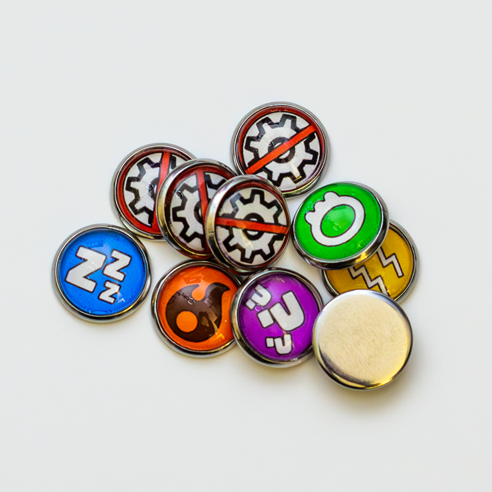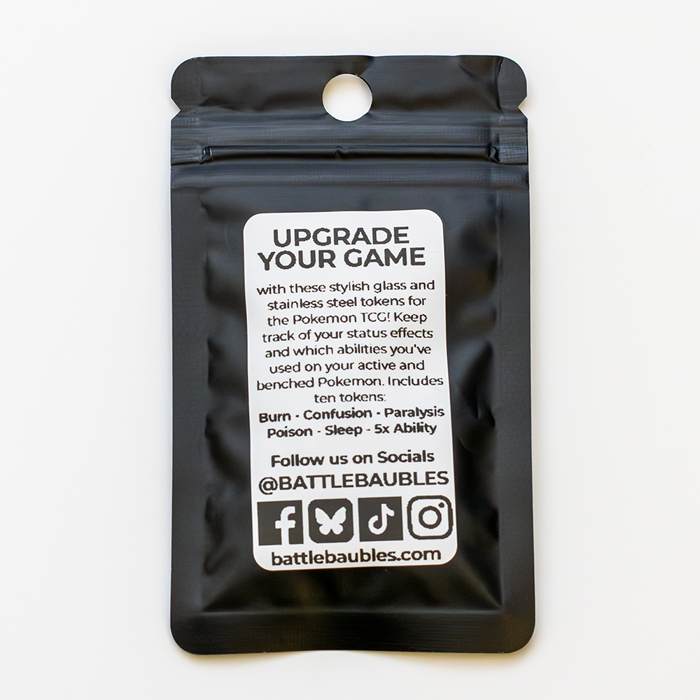 UPGRADE YOUR GAME and relive the 90s with Battle Baubles’ handcrafted Special Condition and Ability Markers! Made from durable glass and stainless steel, these premium counters are built to last and impress; no flimsy cardboard or generic dice here.