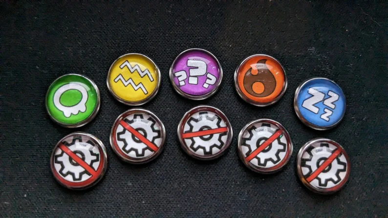 Each set of tokens includes ten (10) markers with bright, visible colors – 5x Ability Used, and 1x each Sleep, Paralysis, Burn, Poison, and Confused.